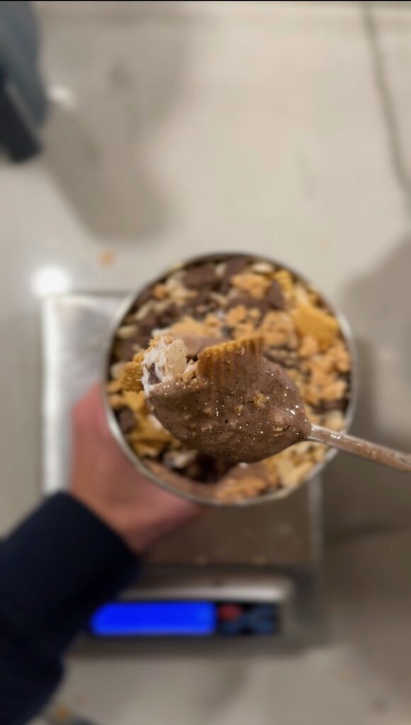 Dessert is non-negotiable for me and it ALWAYS has been. That nightly sweet treat on our comfy chairs, kids in bed, Ross next to me (awake or snoring) matters. When I first started tracking macros, I really hated protein shakes… they were my LAST RESORT dessert. Always too watery, icy, bland, and way too protein-forward. If you’re skeptical, I get it.