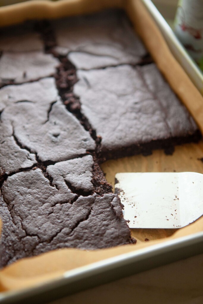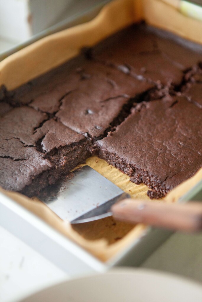 - Blend all ingredients together in a high-speed blender until smooth. Pour batter into a parchment-lined casserole dish (9×13 for 6-10 servings, and a sheet pan if making 12+ servings). Bake for 45 minutes, or until set. I consistently double this recipe and bake in a high sided sheet pan for 60 minutes. (If using whey protein instead of beef, bake for 35 minutes in a 9 x 13, and 50 minutes if you’re doubling. FYI: My favorite Active Stacks protein is superior in these. It yields a much more fudgy texture than whey protein. But of course, use what you have! But be sure to bake for a little less time.