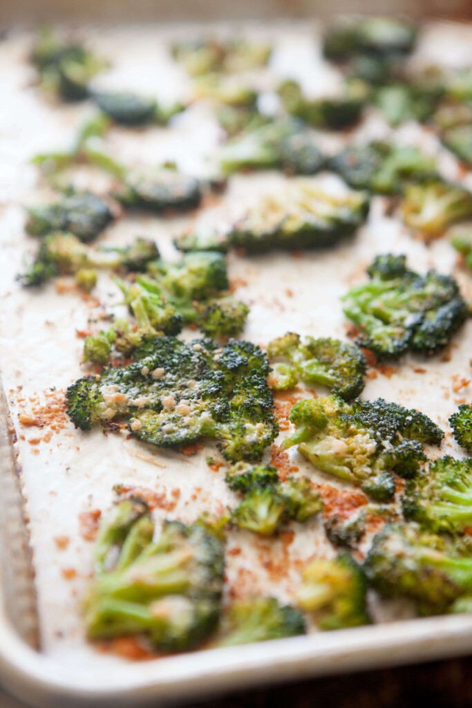- Don’t overcrowd the pan: Make sure to use a LARGE sheet pan! The broccoli needs space in between each floret so the air can circulate in the oven to roast. If the florets are touching, they’ll just continue to steam. Use two pans if needed so you can have adequate space between them.