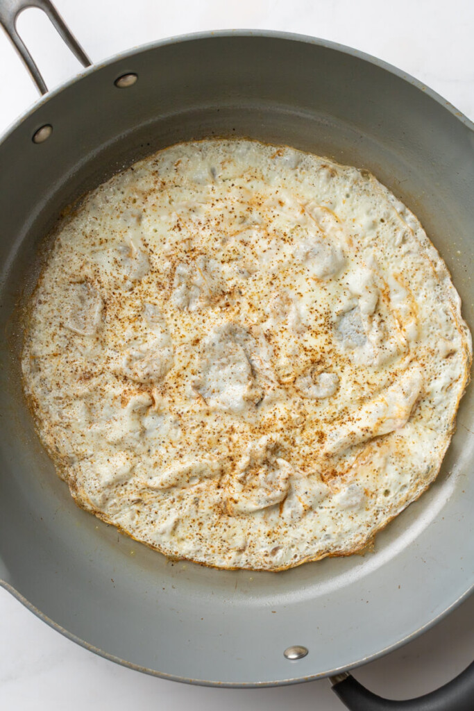 - Use high heat: Cooking the egg whites quickly helps them stay fluffy instead of rubbery.
